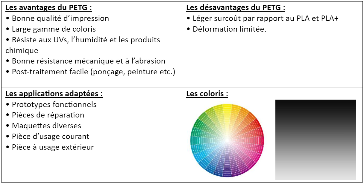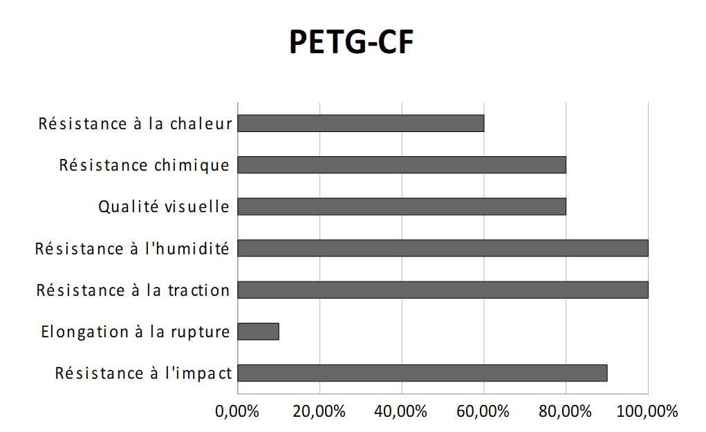 Le PETG-CF est un PETG chargé de fibre de carbone (en moyenne 10 à 20% de fibre de carbone.
