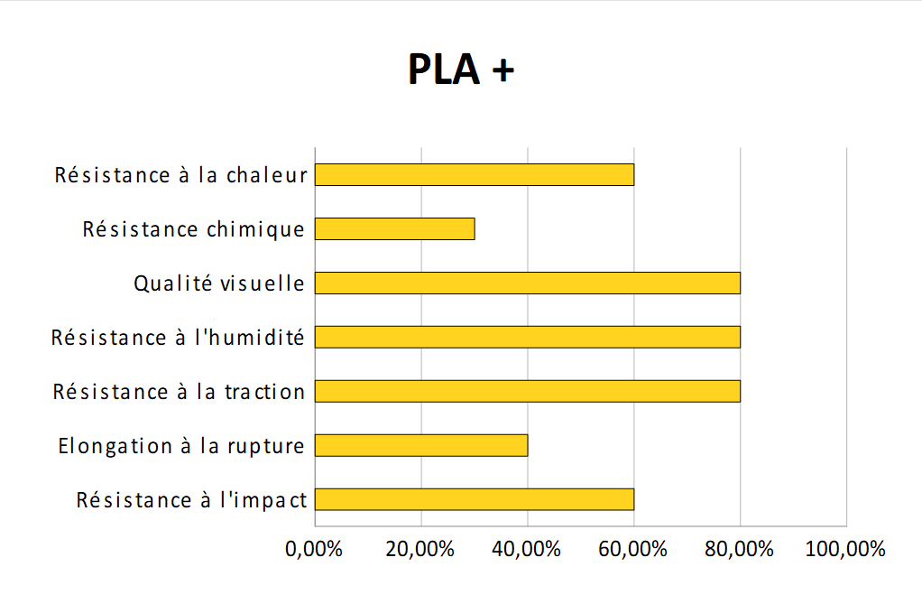 Le PLA + est un PLA modifié avec certains additifs afin d’augmenter ces performances.